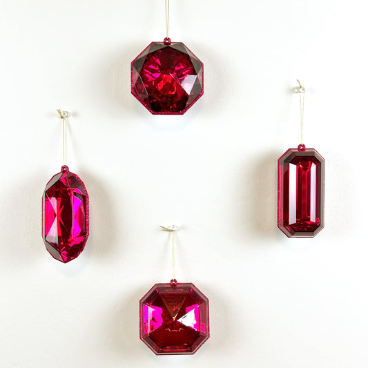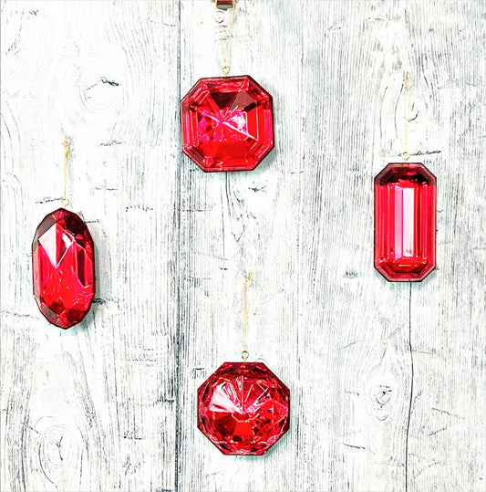 Jewel Ornament Set, Red Jewel Ornaments, Gem Ornaments, Acrylic Jewel Ornament Set, Wreath Attachments, Red Xmas Decor, Farrisilk Ornament