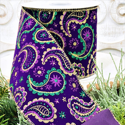 Mardi Gras Ribbon, Purple Velvet Ribbon, Purple Paisley Ribbon, Purple Green and Gold Ribbon, Wired Velvet Ribbon, Wreath Making Supply