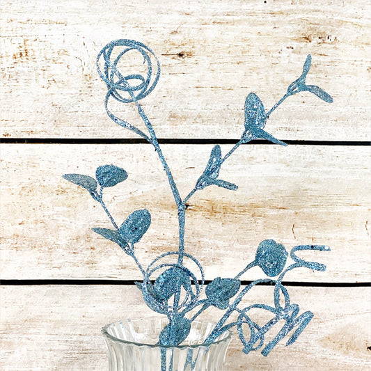 Blue Glittered Eucalyptus Spray, Mark Roberts Sparkling Leaf Spray, Eucalyptus Floral Spray, Wreath Making Supply, Spring Eucalyptus