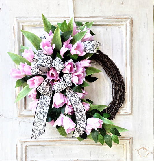 Spring Tulip Wreath for Front Door, Pink Floral Wreath, Spring Wreath, Easter Wreath, Mother's Day Gift, Spring Decor