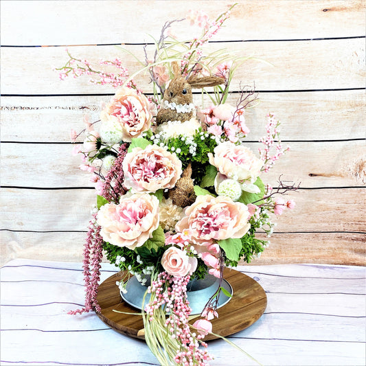 Spring Centerpiece, Easter Bunny Centerpiece, Spring Floral Arrangement, Pink Floral Centerpiece, Mother's Day Gift, Spring Decor