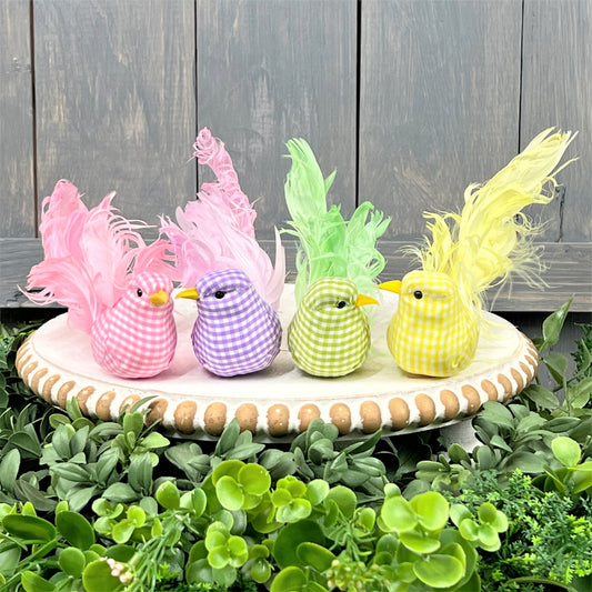 Artificial Bird on Clip, Spring Birds, Easter Decor, Artificial Birds with Feathers, Wreath Making Supply, Spring Decor, Gingham Birds,
