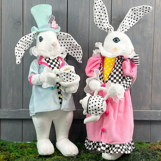 White Rabbit with Tea Pot Wreath Attachment, Dressed Tea Party Bunny, Easter Bunny, Easter Rabbit, Easter Decor, Regency Bunny, Spring Decor