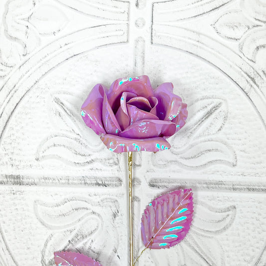 Iridescent Rose with Gold Stem - 6 Colors for Floral Arrangements, Wreaths & Home Decor - Spring Floral Collection, Pink, Yellow, Teal