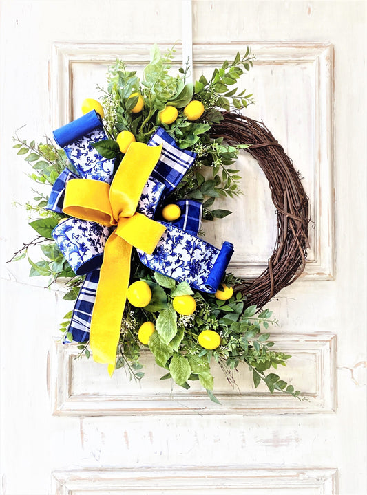 Lemon Wreath for Front Door, Everyday Wreath, Spring Wreath, Blue and Yellow Wreath, Mother's Day gift, Summer Wreath, Front Porch Decor