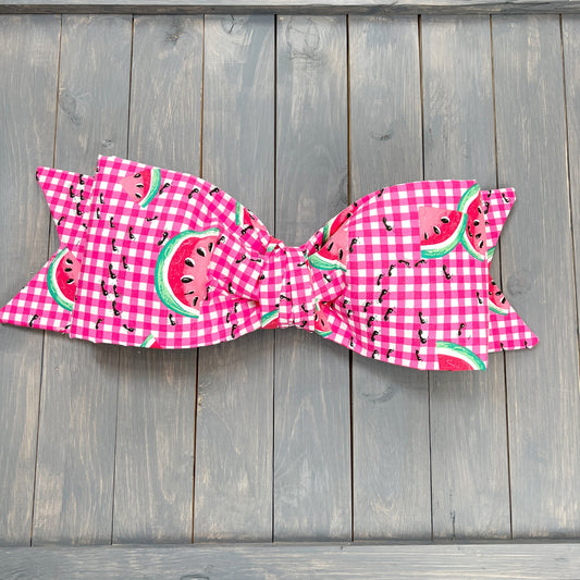 Large Wreath bow, Fabric Bow, Large Lantern Bow, Summer Bow, Gingham Bow, Big Bow, Front Door Decor, Watermelon Bow, Spring Home Decor,
