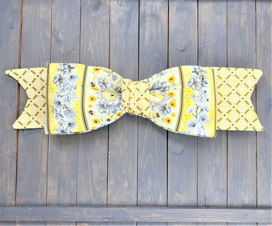 Large Bee Bow, XL Fabric Bow, XL Wreath Bow, Fabric Bow, Lantern Bow, Big Bow, Summer Bow, Front Door Hanger, Chair Bow, Bee Decor,