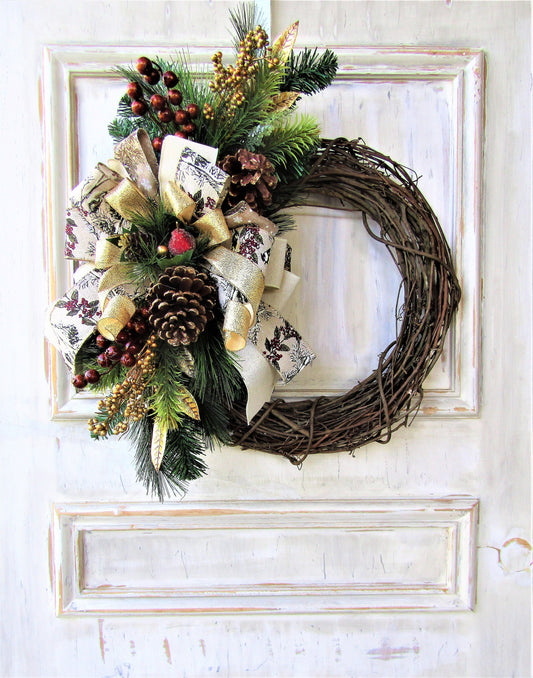Winter Holiday Wreath, Rustic Winter Wreath, Front Porch Decor, Farmhouse Winter, Everyday Wreath, Gift for Her, Sale