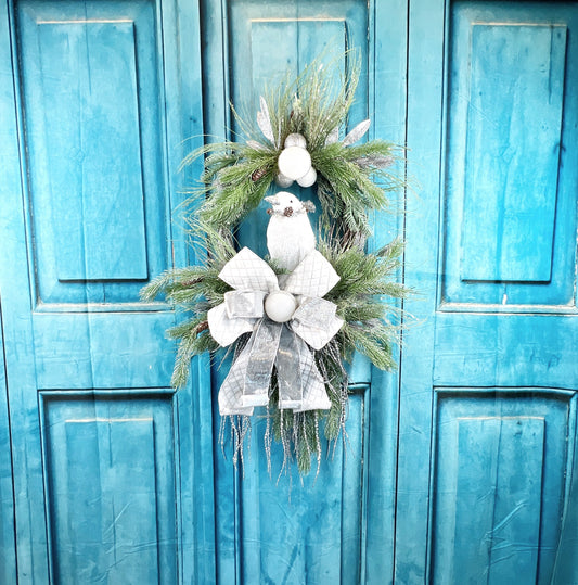 Christmas Wreath for Front Door, Holiday Penguin Swag, Christmas Decoration, Elegant Winter Wreath, Winter Wonderland Decor, Penguin Decor